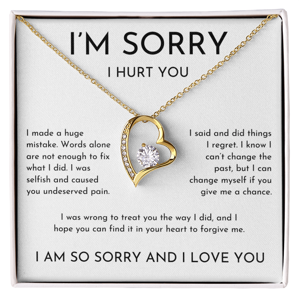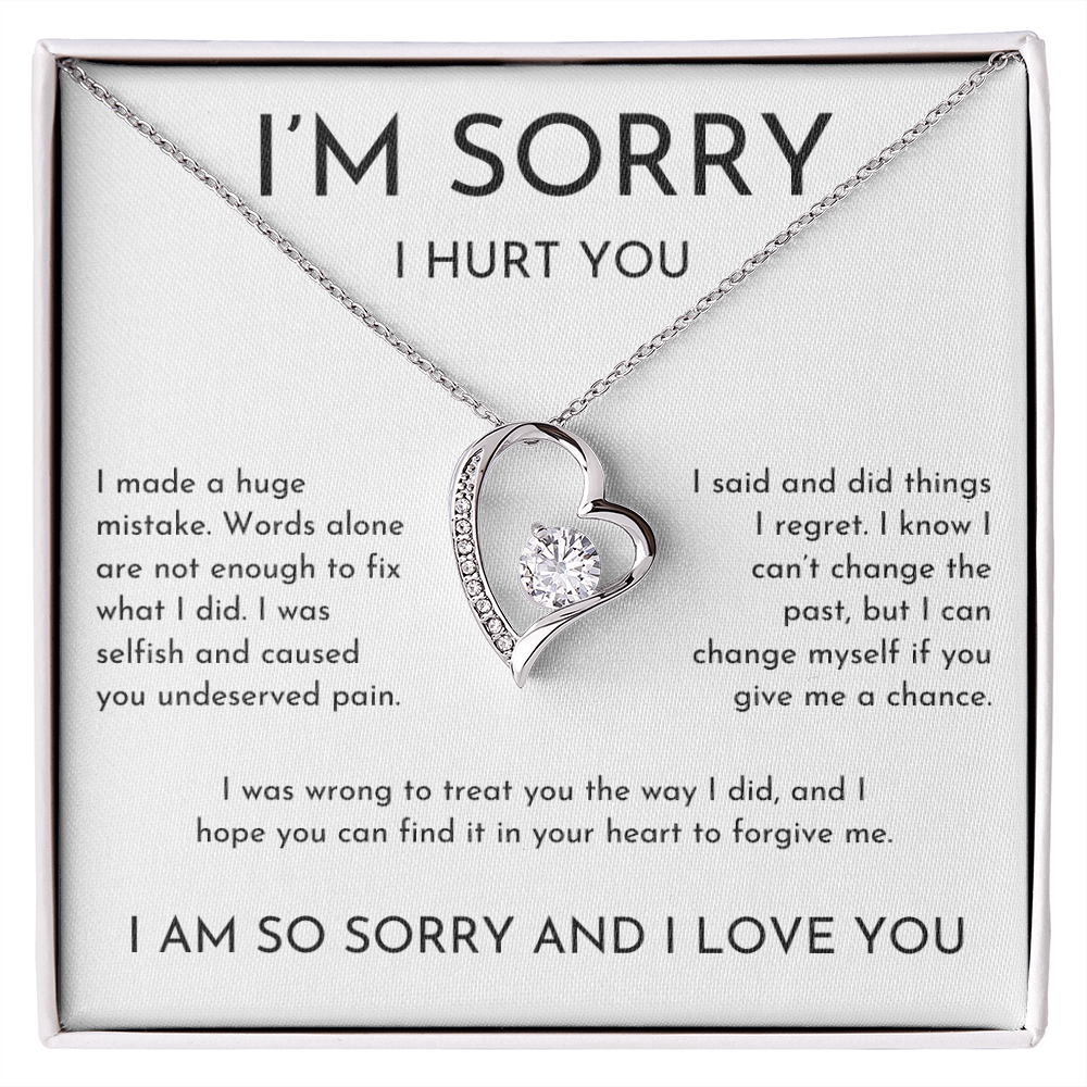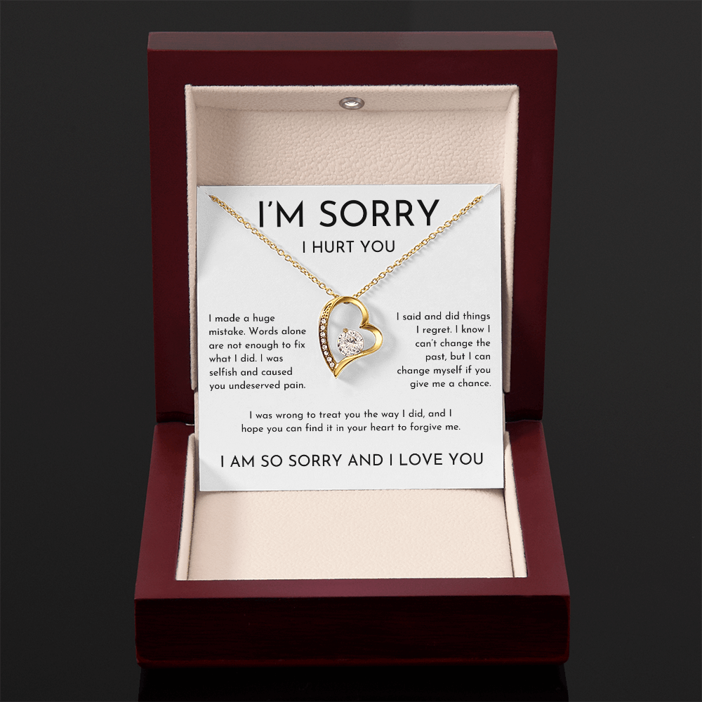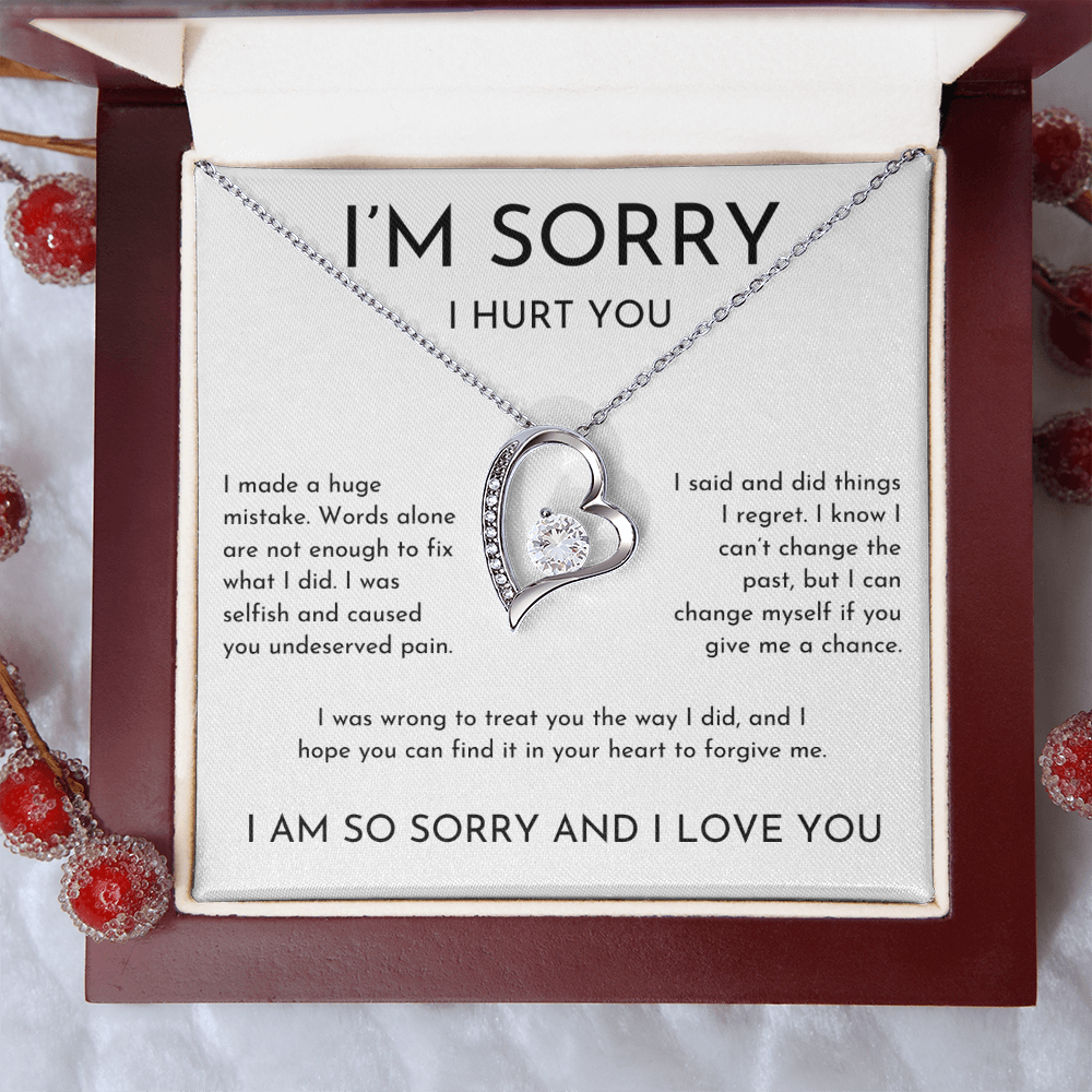 Your I'm sorry I hurt you heart necklace is lovingly packaged in a complimentary soft touch box for easy gifting. Elevate your presentation by upgrading to the mahogany style luxury box, which features a brilliant LED spotlight.