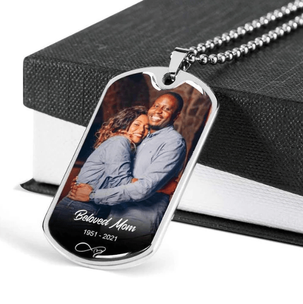 Your Custom Name Photo Dog Tag Memorial Necklace is lovingly packaged in a complimentary soft touch box for easy gifting.