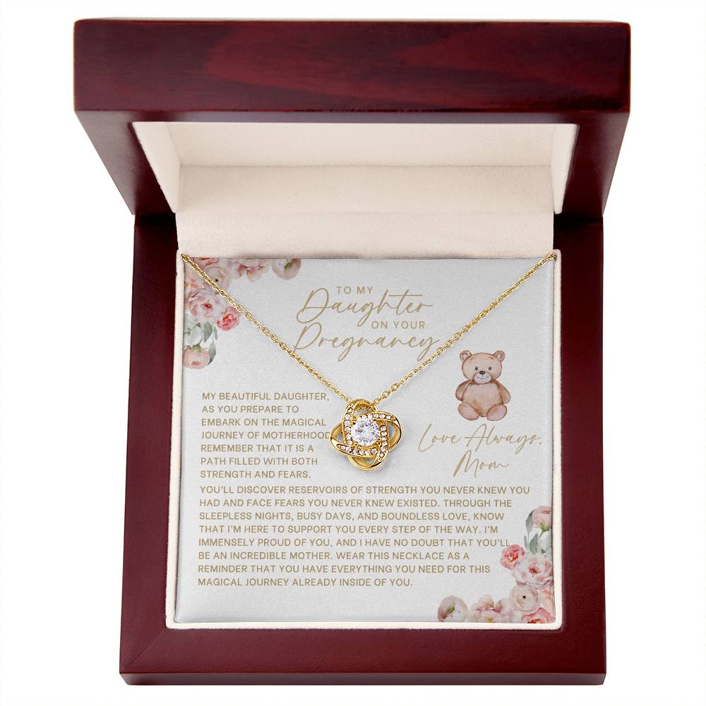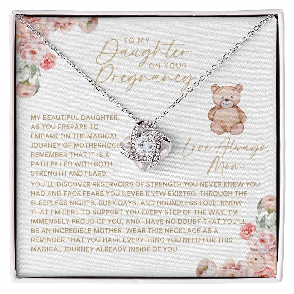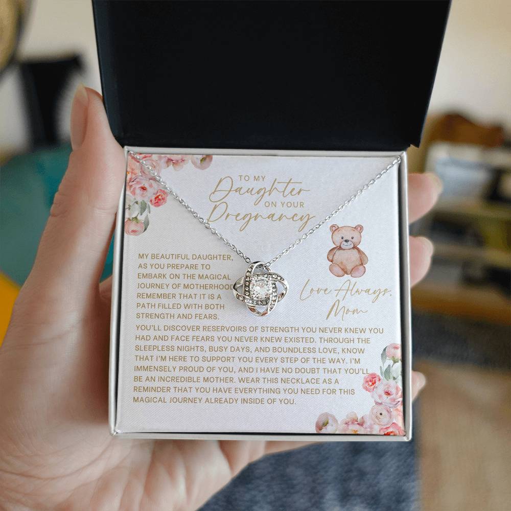 Imagine her reaction receiving this beautiful Love Knot Necklace. Representing an unbreakable bond between two souls, this piece features a beautiful pendant embellished with premium cubic zirconia crystals. Surprise your loved one with this gorgeous gift today!