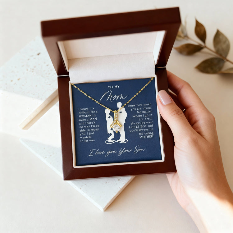 Give your future grandmother in law the gift that symbolizes your never-ending love. This Alluring Beauty necklace features a petite ribbon shaped pendant and is the perfect and unique gift for that special someone this holiday season.