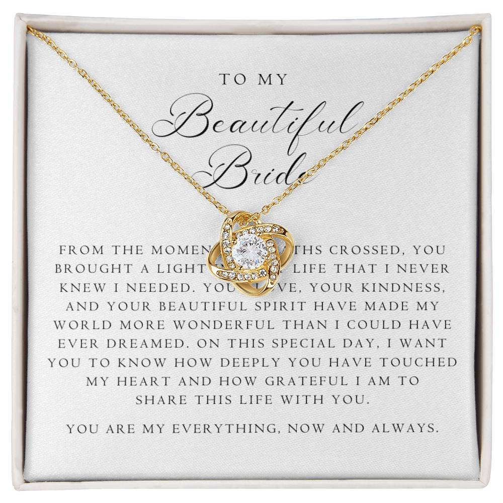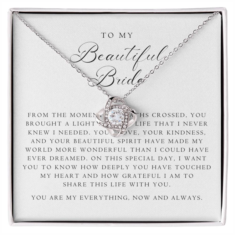 Imagine her reaction receiving this beautiful Love Knot Necklace. Representing an unbreakable bond between two souls, this piece features a beautiful pendant embellished with premium cubic zirconia crystals. Surprise your loved one with this gorgeous gift today!