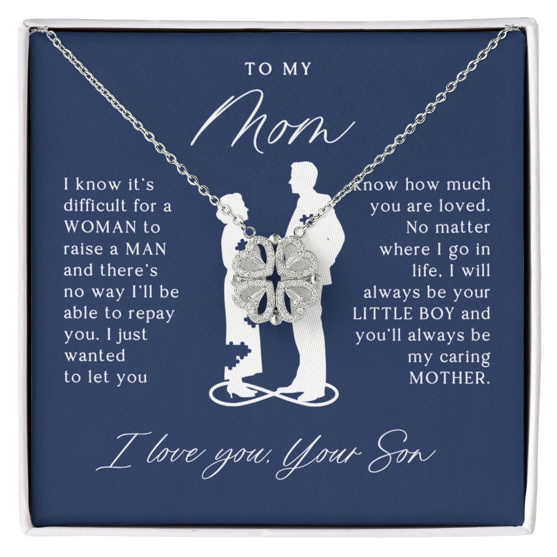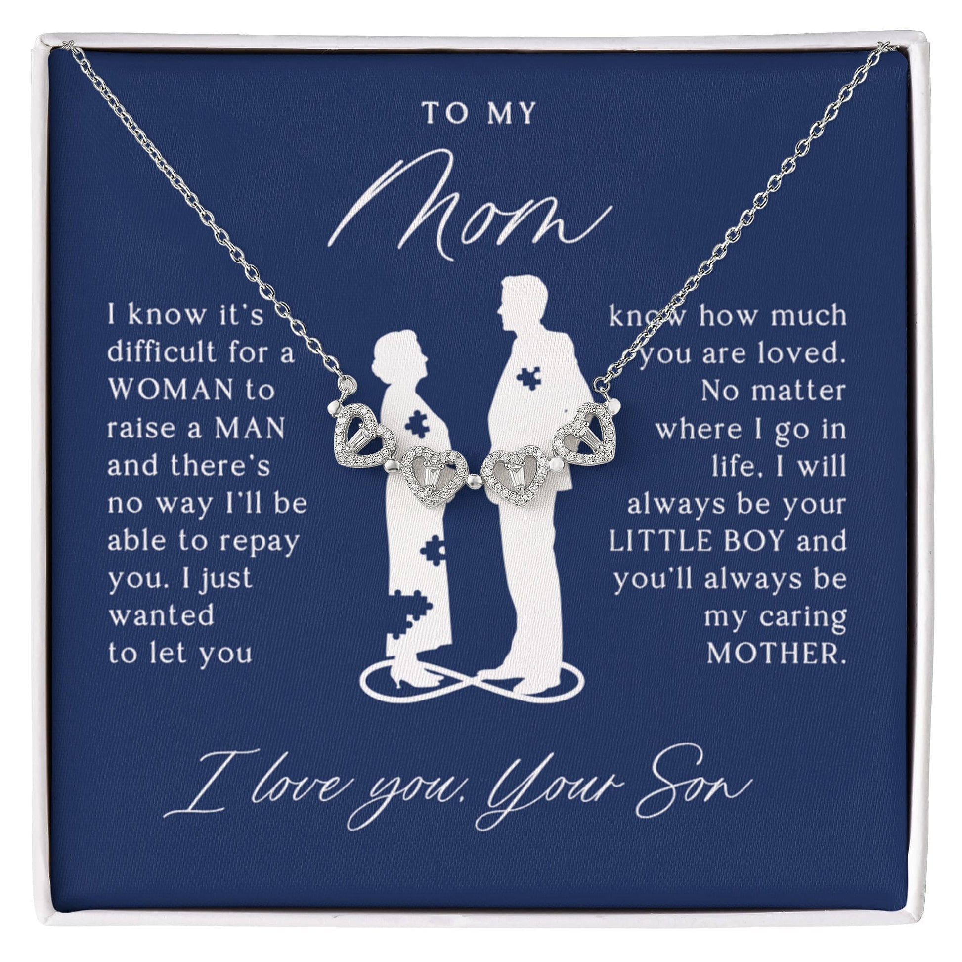 Your To My Mom from son magnetic hearts necklace is lovingly packaged in a complimentary soft touch box for easy gifting. Elevate your presentation by upgrading to the mahogany style luxury box, which features a brilliant LED spotlight.