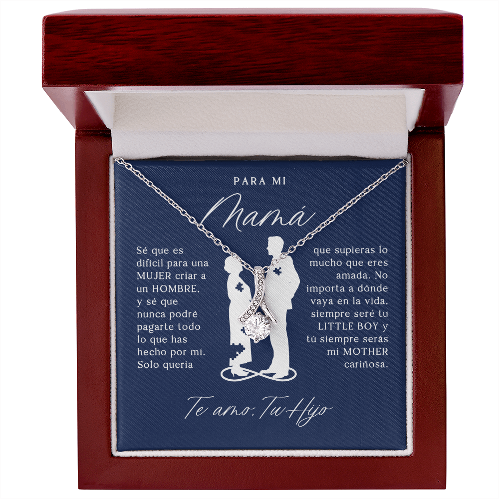Imagine your mom's reaction when she opens this stunning gift! The Alluring Beauty necklace features a petite ribbon shaped pendant that is sure to dazzle your special someone. Whether it's a birthday or Mother's Day, make sure to get her a gift she will love for years to come.